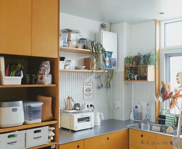 厨房傍边的大窗户,这个空间咱们要哄骗好,这也算是黄金收纳区域。