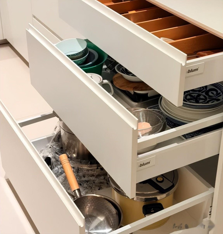邻居家作念的谋划就很东谈主性化,她她家是选择了落地橱柜抽屉。