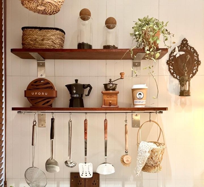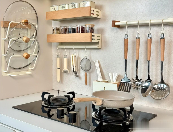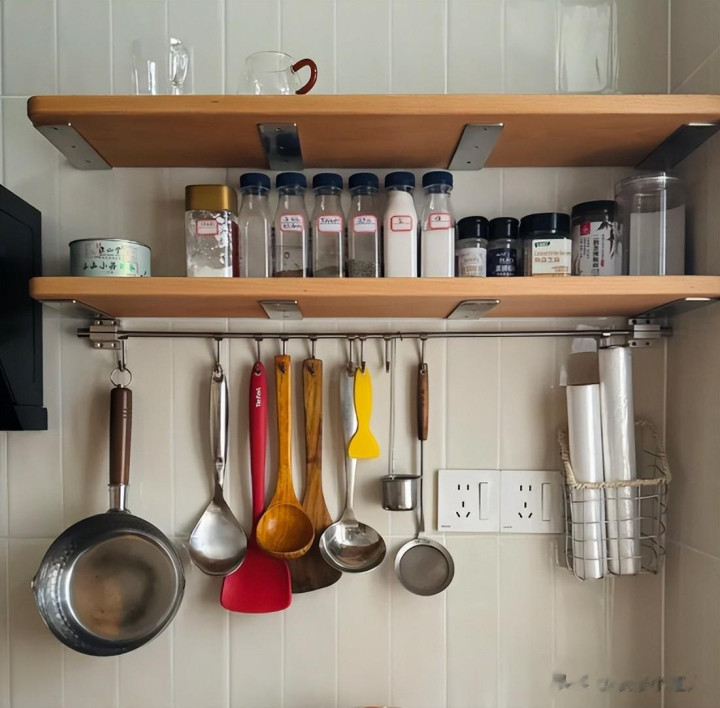 这样你能把各式厨具、调料、餐具等等都吊挂在上头。