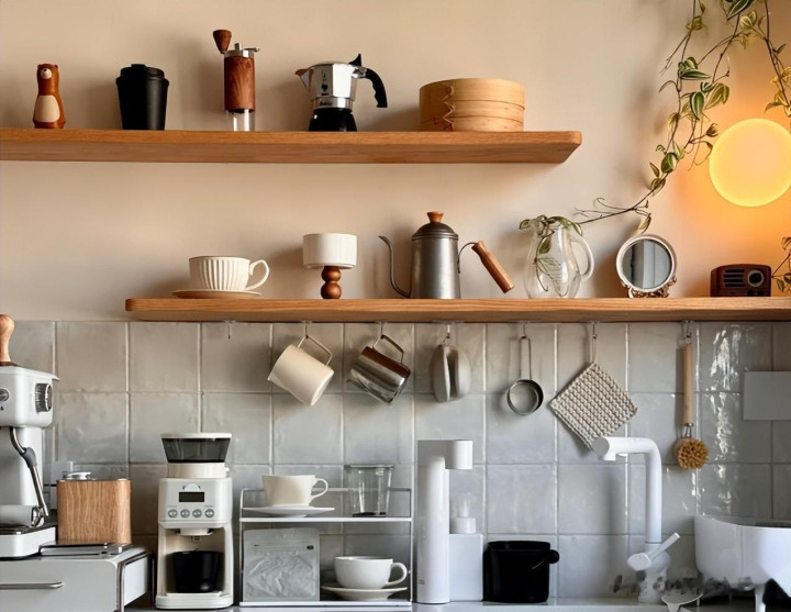 一层不错用来放常用的电器,另一层放常用的厨房物品,不占场合又好打理,几乎不要太香了。