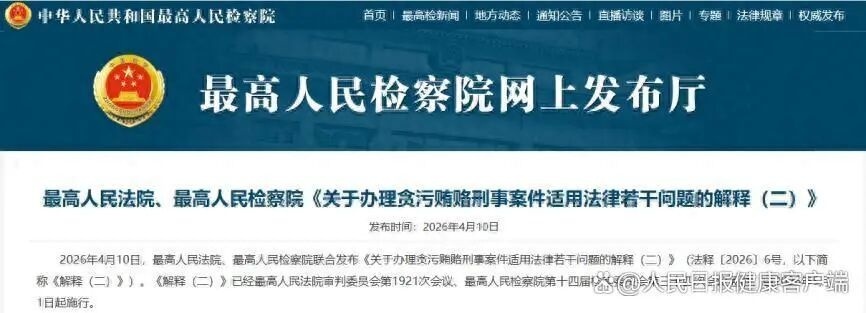 4月10日,最高手民法院、最高手民检验院聚会发布《对于办理古老贿赂刑事案件适用法律多少问题的评释(二)》,对单元贿赂罪、单元纳贿罪等罪名的定罪量刑圭表作出细化,于5月1日起履行。