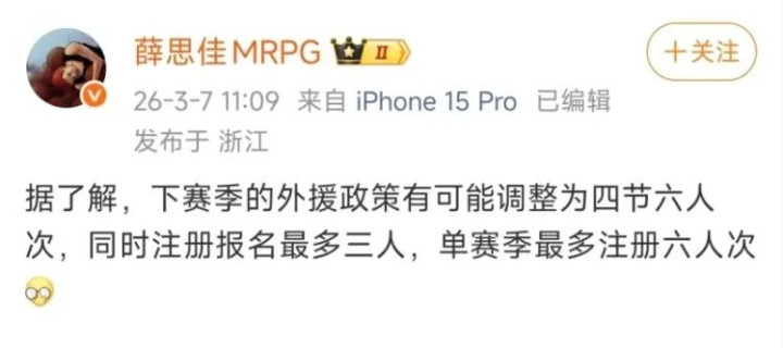 CBA全明星周末仍是认真开启,接下来即是11日第二阶段认真开打了。另外女篮世初赛也会在11日开打,接下来球迷概况和顺的比赛照旧比拟多的。关联女篮方面的具体信息,接下来也会有更多报谈,这要等细则了大名单后详备推崇。目下CBA联赛有三大最新音讯,一是CBA联赛特意对下个赛季的外助策略进行休养,东谈主数和工资帽王人有所变化;二是杨瀚森在比赛中高效砍下了21分9个篮板6次助攻的豪华数据;三是郭士强在CBA全明星接待宴集上,规复了“抢断”富永启生名口头。