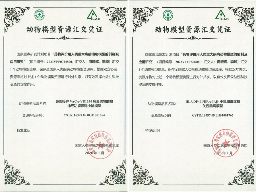 两项模子均赢得国度东说念主类疾病动物模子资源库颁发的汇交阐发,模子信息已纳入国度资源库杀青公开分享,将面向寰宇科研单元敞开使用,以程序化资源因循我国生物医药限制的基础询查与新药研发。