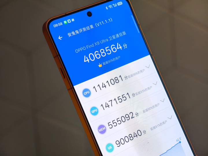 第三,现时Ultra机型中,OPPO的性能开释相对莫得那么克制,安兔兔莽撞400万+,打游戏的舒服性还可以,电板容量仅次于隔邻保时捷(第二大),3小时承延续航测试(王者荣耀/抖音/4K60帧率),剩余电量72%。
