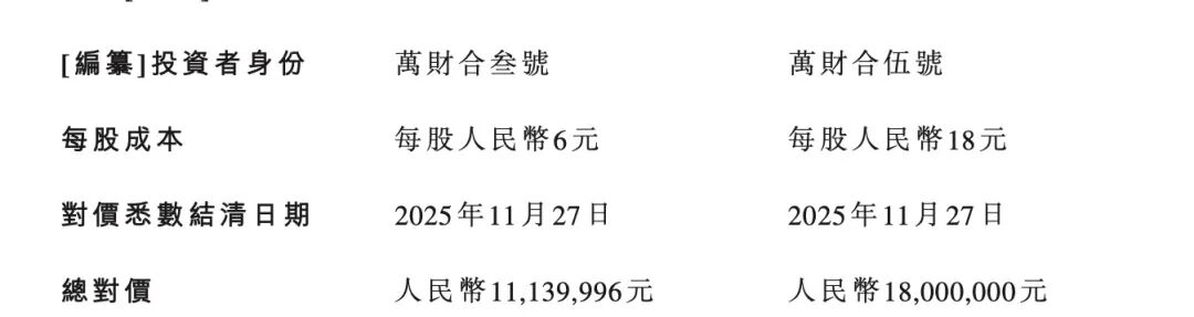 具体来看,2025年9月,张铁山以2000万元的价钱认购公司2000万股;张峰以1800万元认购1800万股,对应每股价钱仅1元。而由职工和独创东谈主家眷的亲一又持股平台“万财合”,共计以7200万元认购了1200万股,平均6元/股。