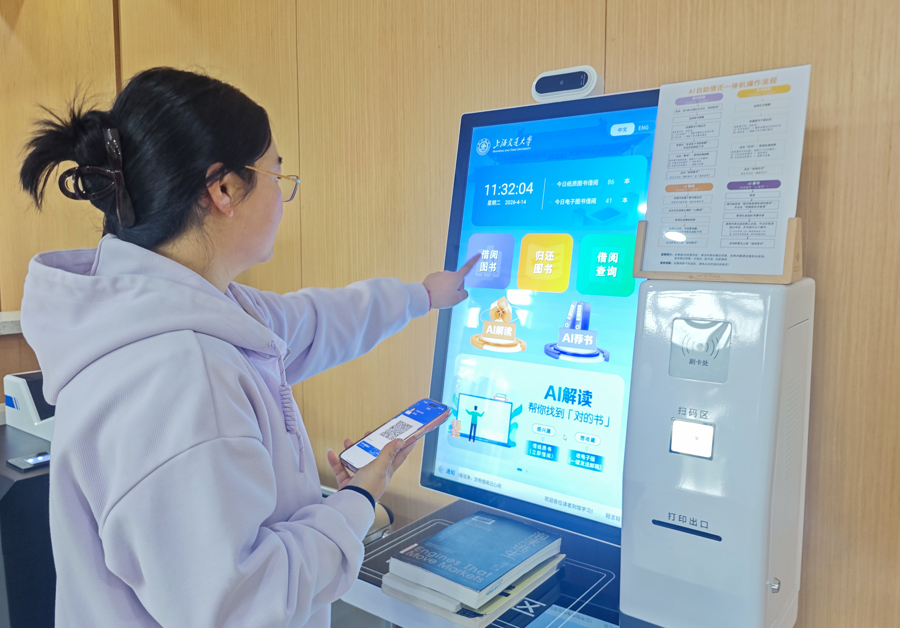 上海交通大学藏书楼推出AI纸电一体自助借还机,标识着藏书楼处事迈入“纸电和会、智能协同”的新阶段 摄影:陶磊